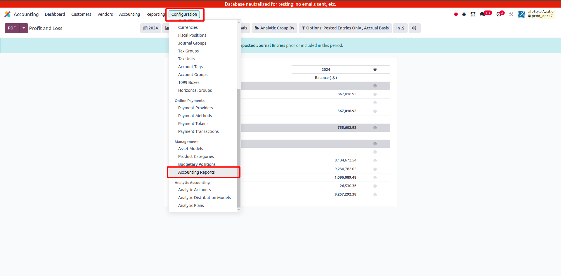 Navigate to Configuration -> Accounting Reports to select the report where you'd like to enable the total column.